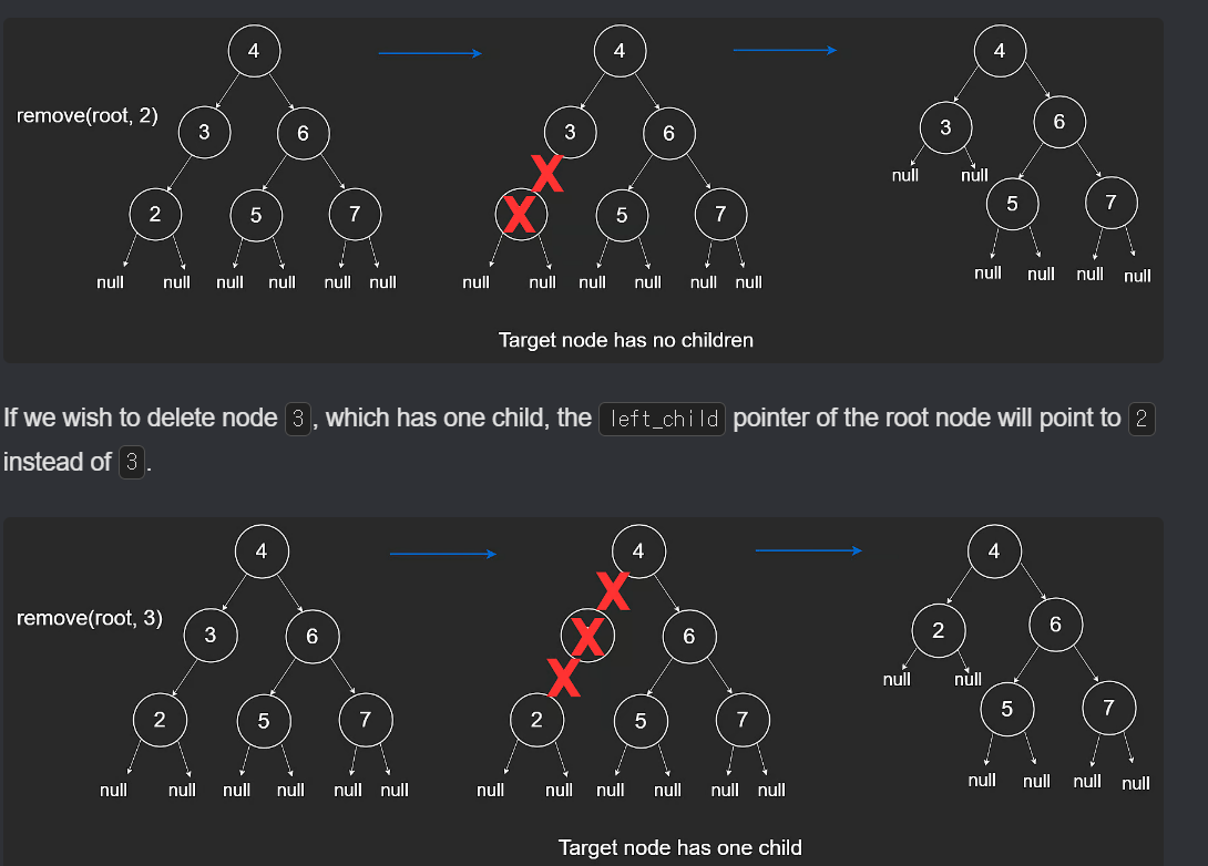 # Remove a node and return the root of the BST.